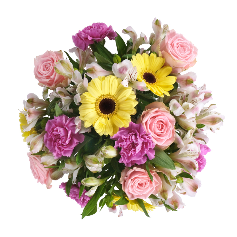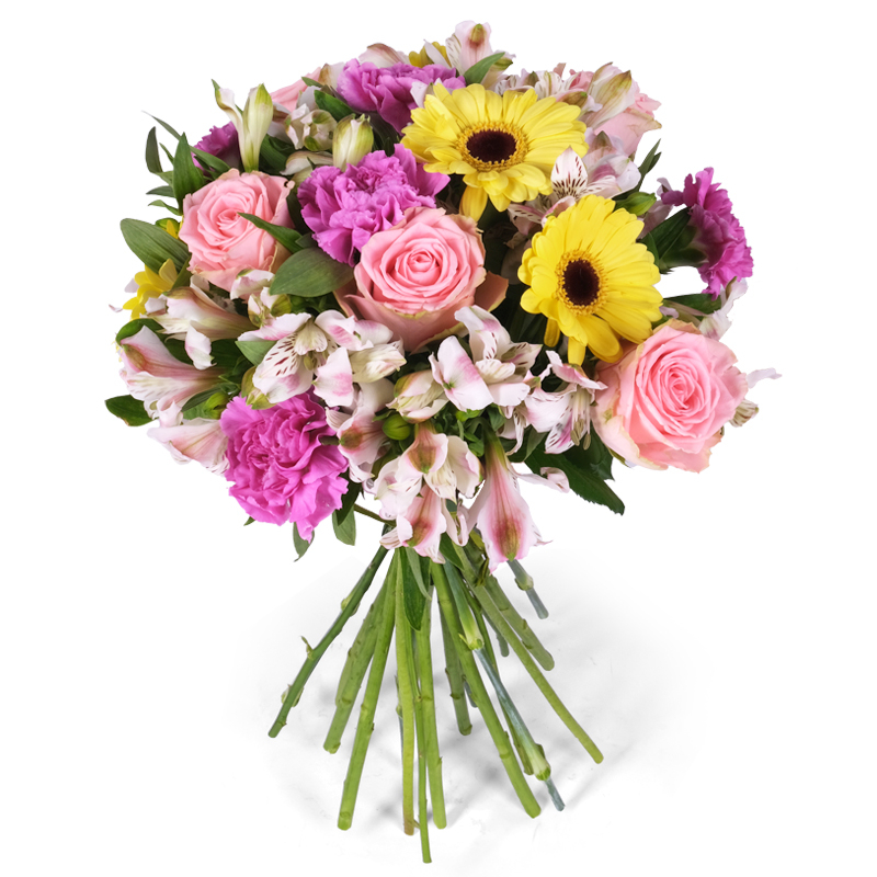 Zawsze świeże kwiaty Bukiet kwiatów to prezent idealny każdą okazję, a połączenie róż, gerber, alstromerii i goździków jest perfekcyjne, gdy chcesz podarować komuś trochę uśmiechu. Napisz coś w liściku lub wyślij podarunek anonimowo!