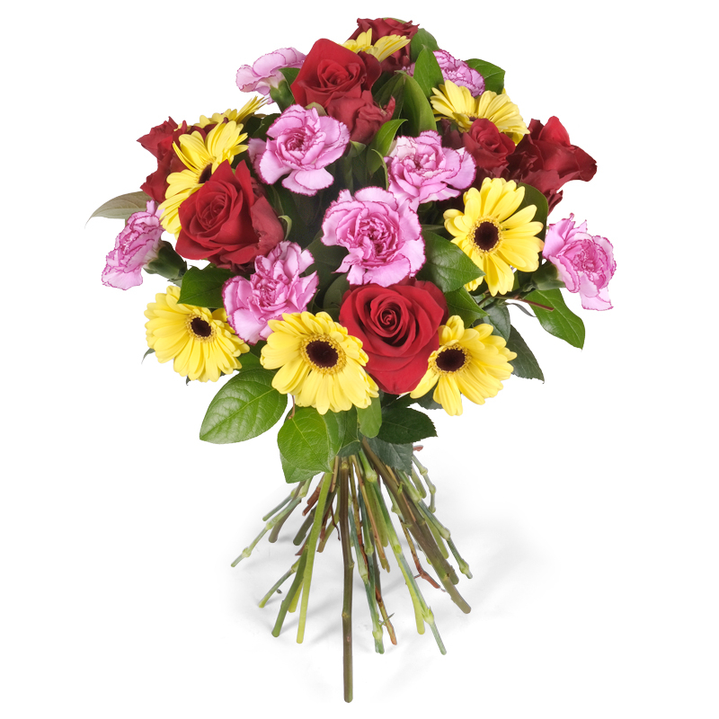 Zawsze świeże kwiaty Kompozycja z róż, gerber i goździków to kwiatowa harmonia w najpiękniejszym wydaniu. Każdy kwiat został dobrany z myślą o wyjątkowym efekcie. To bukiet, który doda elegancji każdej chwili. Doskonały zarówno dla kobiety, jak i mężczyzny. Prosty, ale niezwykle efektowny.